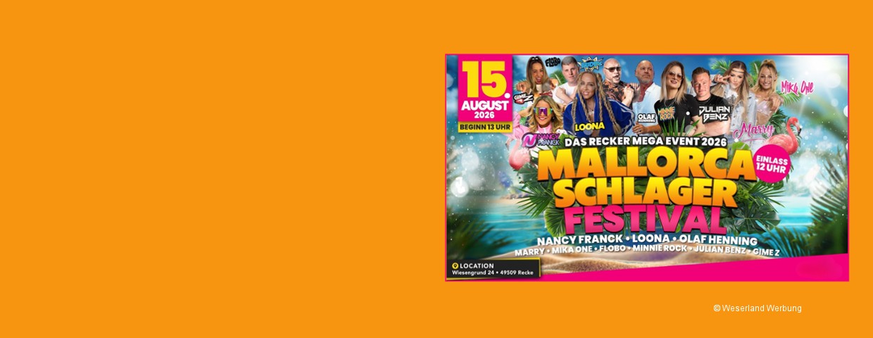 Ticket prices include applicable VAT and additionally a booking fee of max. € 3.00 plus shipping costs. Exact calculation of the booking fee during ticket selection.