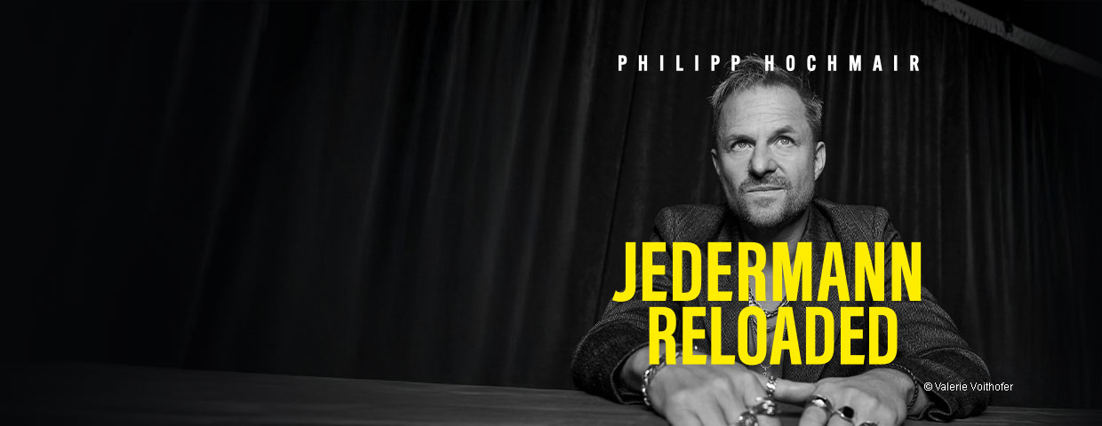 In einem leidenschaftlichen Kraftakt schlüpft er in alle Rollen und macht Hugo von Hofmannsthals Stück zu einem vielstimmigen Monolog. Ein Zwiegespräch mit zwei Mikrofonen. Eines für Jedermann und eines für die anderen. Sein Jedermann ist ein Rockstar. Getrieben von Gitarrenriffs und experimentellen Sounds der Band Die Elektrohand Gottes verwandelt Philipp Hochmair das 100 Jahre alte Mysterienspiel in ein apokalyptisches Sprech-Konzert.